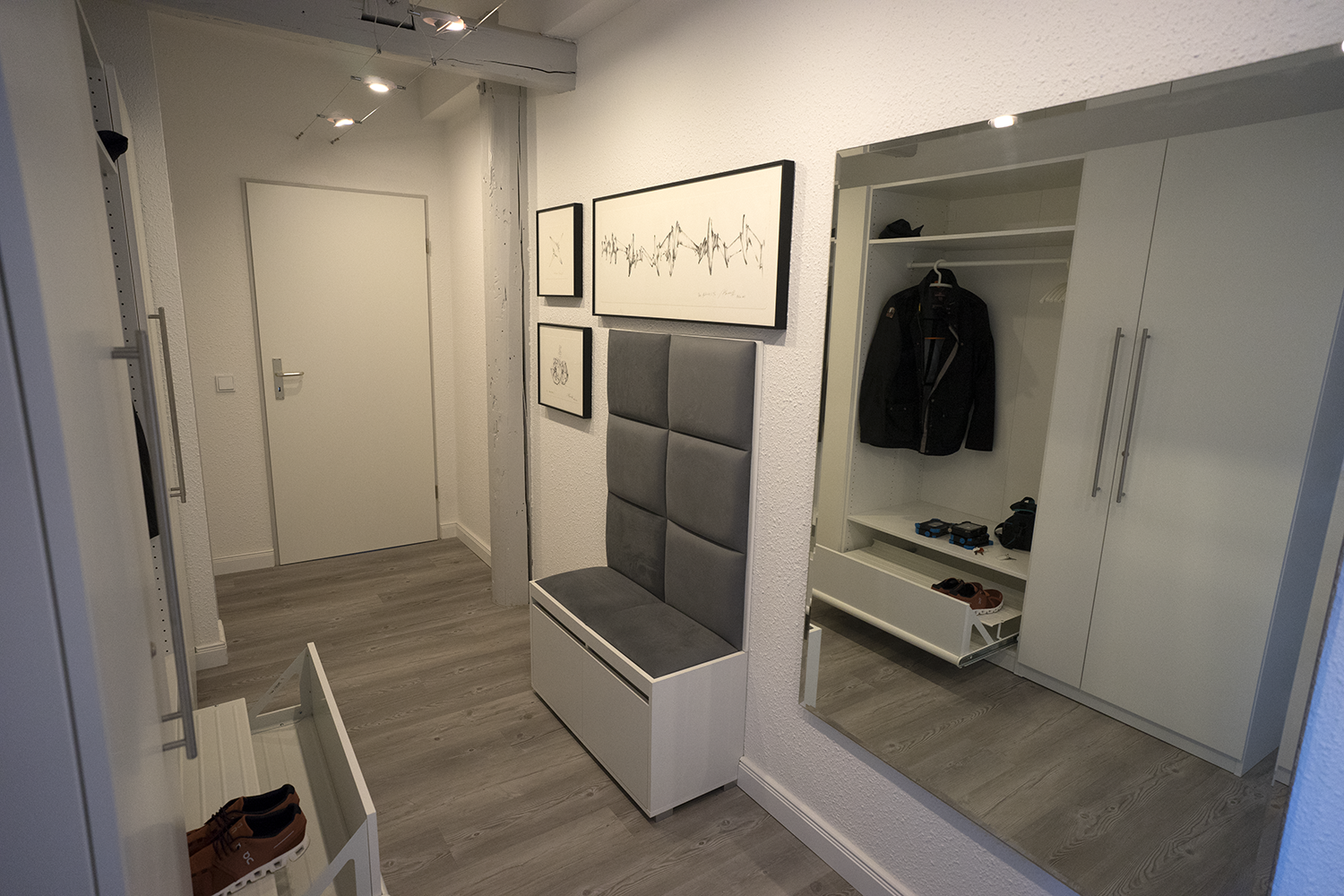 Diele: mit bequemer Schuhbank, zwei Garderoben und Schuhschrank