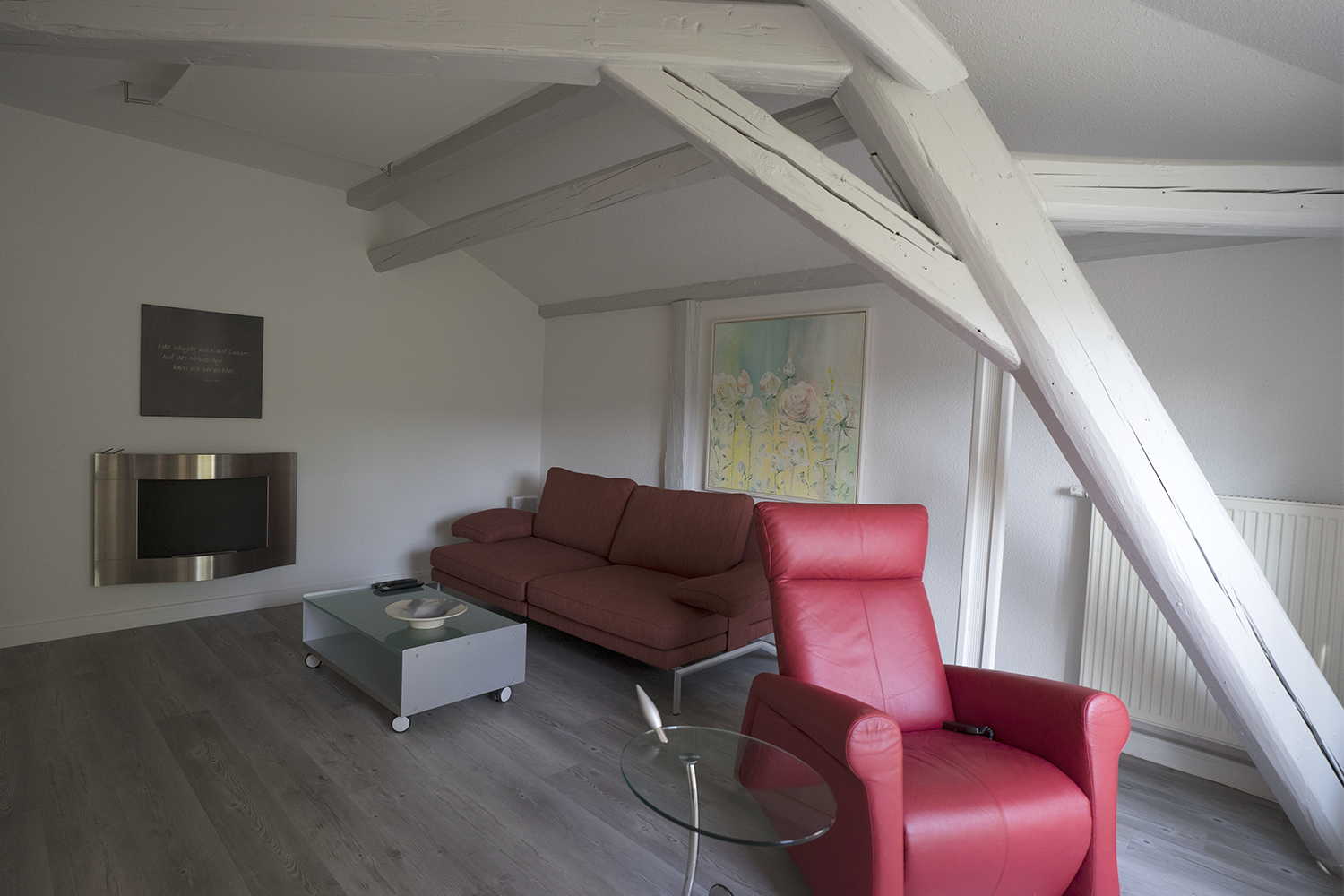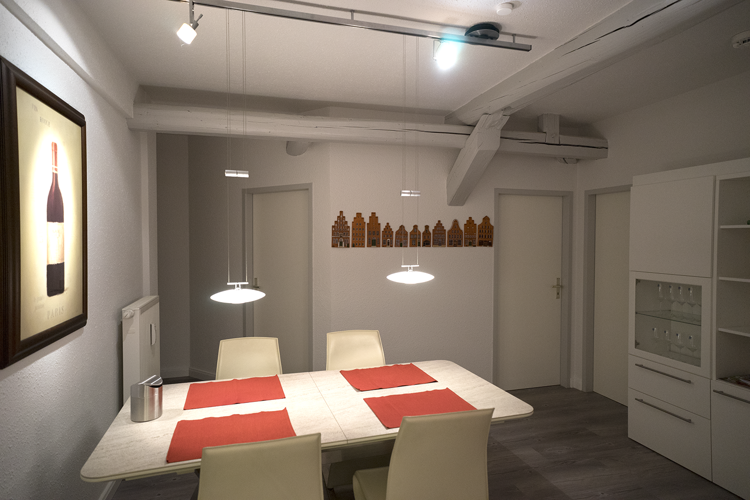 Wer den dritten Stock ohne Fahrstuhl nicht scheut, wird am Anreisetag ab 15 Uhr freundlich mit einem Piccolo und Mineralwasser empfangen und eingewiesen.