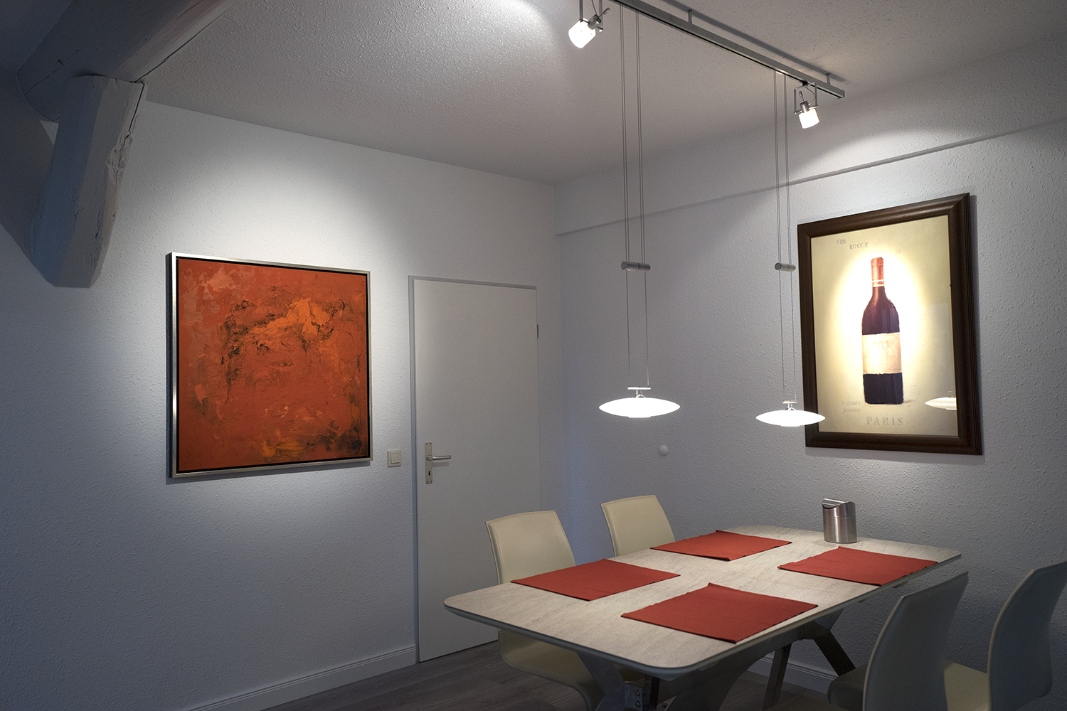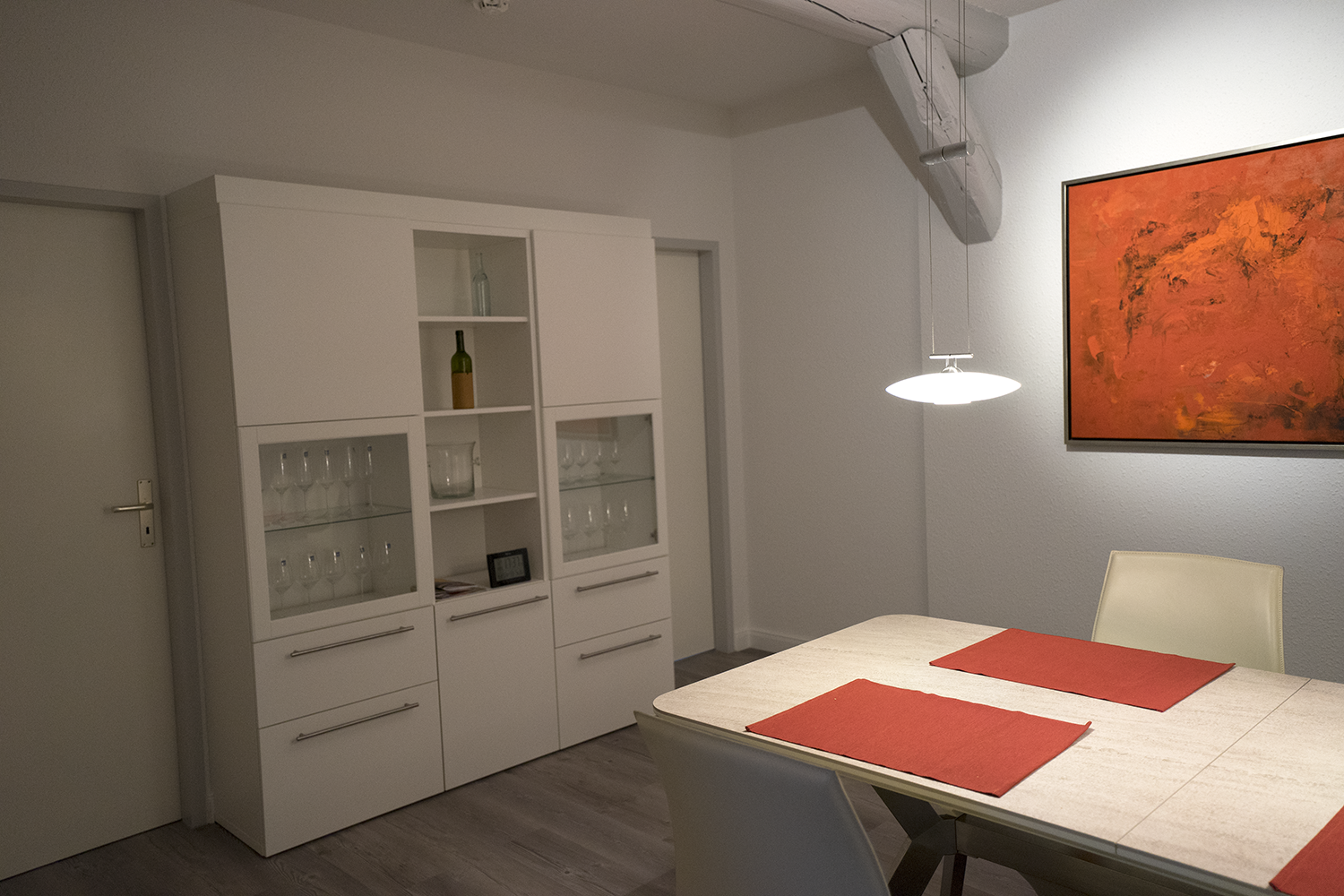Esszimmer: Esstisch, Designbeleuchtung, Geschirrschrank